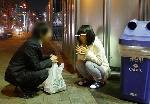 深夜0時過ぎに繁華街の雑居ビルの前でパジャマ姿で座り込んでいたJ系に声をかけてみたら泊まりで遊びに来ていた友達とケンカして家に帰れない状況だったそうです。