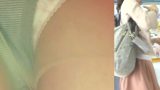階段を上る途中、彼女は左手で自分のスカートを上から押さえてパンチラガードをし始めました。これはパンツの上に重ね履きを履いておらず、生パンツな証拠です。そこでさらに強引にスカートの中へとカメラを突っ込んでいきました。