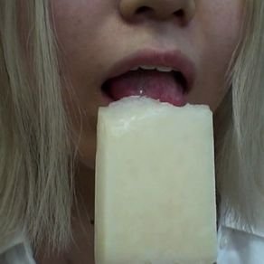 商品名 : 【口/唇/舌/舌ピアス】巨乳色白金髪ギャル!アイスペロペロ&胸チラ(ブラウスをはだけて片ブラ丸見え)